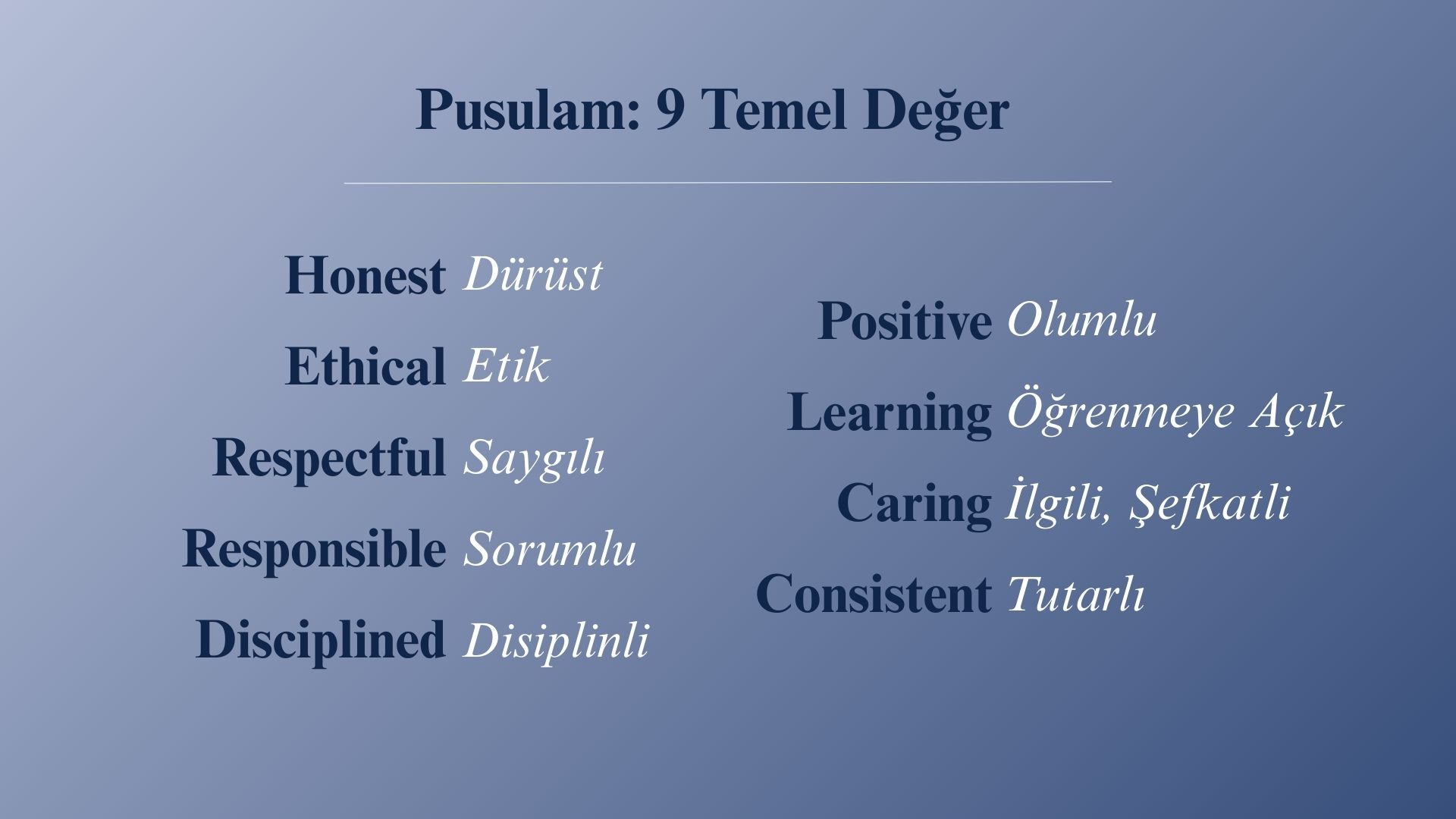 Bu değerlerin tamamı, hayatımın ve liderlik anlayışımın ortak paydasını oluşturur.